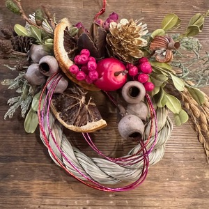 お正月しめ縄リース★ドライフラワーしめ縄 お正月飾り お正月 オリジナルしめ縄 しめ飾り /2021032