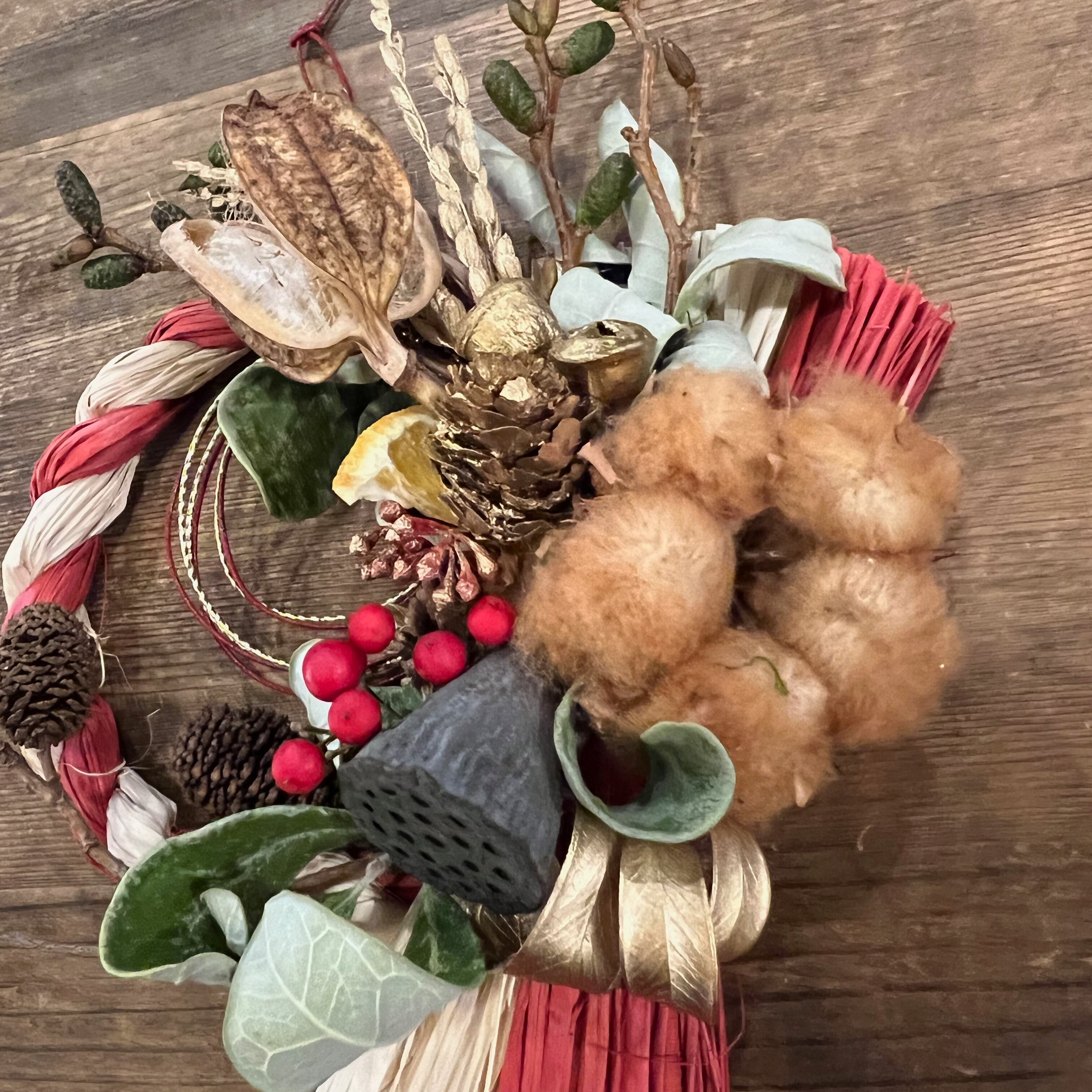 お正月しめ縄リース★ドライフラワーしめ縄 お正月飾り お正月 オリジナルしめ縄 しめ飾り /2021033
